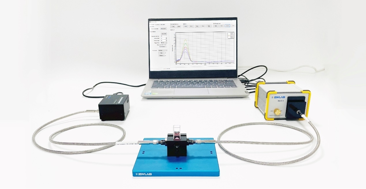 以HLS-1鹵鎢燈為光源,使用RGB-VIS-NIR-CL微型光譜儀(400-1100nm)搭配整套設備測試不同濃度胭脂紅色素的吸光度光譜曲線。