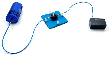 液體透射測量系統(tǒng)如下圖所示,與固體透射測量系統(tǒng)的區(qū)別就是用四向試管支架替換透反射樣品支架。試管支架的四面均連接一個(gè)準(zhǔn)直透鏡,兩兩相對。